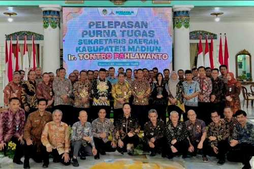 Suasana haru menyelimuti pendopo Muda Graha, (Sabtu 29/11/2025) saat pelepasan purna tugas Sekda Kabupaten Madiun Ir. Tontro Pahlawanto yang mengabdi cukup lama, 33 tahun sehingga banyak kenangan tercipta selama bertugas.