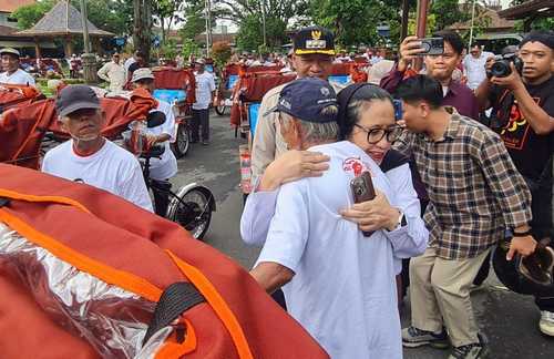 Sementara itu, Nanik S Deyang yang juga menjabat sebagai Wakil Ketua Yayasan Gerakan Solidaritas Nasional (GSN), sempat meneteskan air matanya usai berkeliling kota bersama para pengayuh becak sepuh yang kini tidak lagi mengayuh setelah mendapat becak listrik gratis. Nanik bahkan memeluk erat salah satu pengayuh becak tersebut.
