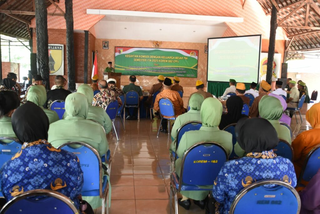 Komunikasi Sosial dengan Keluarga Besar TNI ini dihadiri kurang lebih 90 peserta oleh berbagai elemen KBT, termasuk Purnawirawan TNI, Warakawuri TNI, putra-putri TNI, dan perwakilan istri prajurit Persit KCK serta ASN Korpri TNI Wilayah Jajaran Korem 082/CPYJ.
