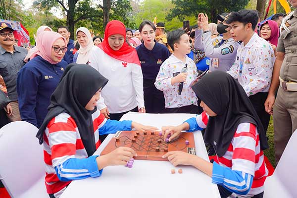 Menteri PPPA menyampaikan rasa bangganya terhadap anak-anak Jawa Timur yang aktif, ceria, dan mampu memainkan berbagai permainan tradisional anak.