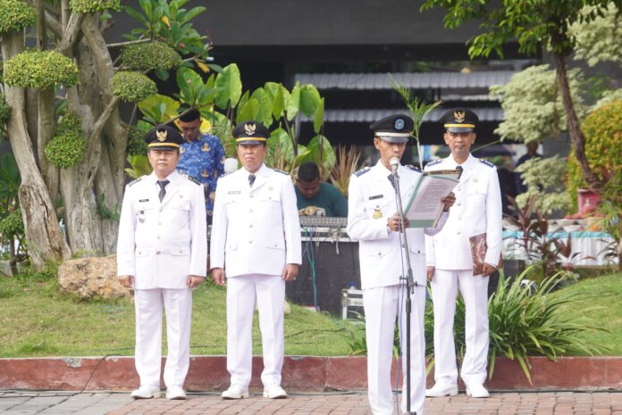 Bupati Lamongan Yuhronur Efendi bertindak sebagai Inspektur Upacara memimpin pelaksanaan Upacara Peringatan Hari Otonomi Daerah (Otoda) Ke-XXX Tahun 2026 pada Senin (27/4), di Halaman Pemkab Lamongan.
