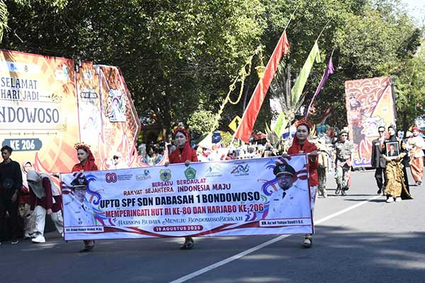 Memperingati Hari Jadi Bondowoso (Harjabo) yang ke-206, Pemerintah Kabupaten Bondowoso menggelar pawai budaya yang melibatkan para pelajar dari berbagai jenjang pendidikan.