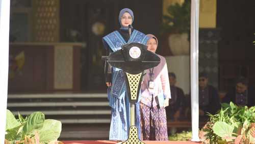 Wali Kota Kediri Vinanda Prameswati memimpin apel peringatan Hari Kartini di lingkungan Pemerintah Kota Kediri, Selasa(21/4). Dalam kesempatan itu, ia mengajak seluruh elemen masyarakat mewujudkan ruang aman dan nyaman bagi perempuan, baik di dunia nyata maupun digital.