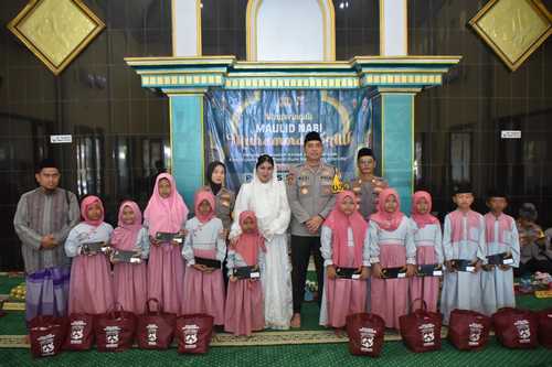 Jajaran Polres Situbondo menggelar peringatan Maulid Nabi Muhammad SAW dengan penuh khidmat di Masjid Al-Asykar dengan doa bersama dan pemberian santunan kepada anak yatim piatu. Kegiatan religius tersebut dimulai pukul 08.00 WIB ini dihadiri Kapolres Situbondo AKBP Rezi Dharmawan bersama Ketua Bhayangkari Cabang Situbondo, Cania Rezi Dharmawan, Wakapolres Kompol Indah Citra Fitriani, Pejabat Utama Polres, Kapolsek Jajaran, perwira, anggota Polres, ASN, serta pengurus Bhayangkari.