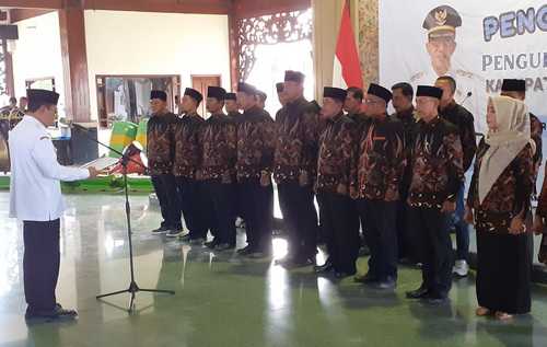 Bupati Pamekasan, Madura, Jawa Timur, KH Kholilurrahman mengukuhkan Ketua dan Pengurus Persatuan Kepala Desa (Perkasa) Periode 2025 -2030, di Phandapa Ronggosukowati, Rabu (30/7).