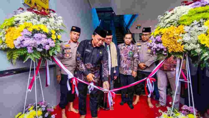 Setda Suprapto saat melakukan penguntingan pita pengoperasian eskalator Masjid Agung Maulana Malik Ibrahim, Jumat (13/2/2026). kerin ikanto/bhirawa