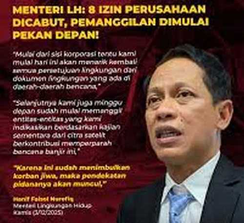 Pasca bencana besar Sumatera, pemerintah akan “me-rapi-kan” perizinan kehutanan. Tanpa pandang bulu, termasuk konsesi hutan yang kondang dimiliki Presiden Prabowo. Juga moratorium sementara izin baru. Potensi tuntutan pidana bisa jadi dilakukan, sesuai UU Nomor 41 Tahun 1999 Tentang Kehutanan. Khususnya rumusan larangan yang tercantum pada pasal 50. Terdapat pula Ketentuan Pidana pada pasal 78 dengan 15 ayat. Namun jika terdapat kerugian negara wajib diarahkan pada UU Tipikor.