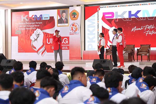Pengenalan Kehidupan Kampus bagi Mahasiswa Baru (PKKMB) Universitas 17 Agustus 1945 (Untag) Surabaya bertajuk ‘Merah Putih Mengakar, Patriotisme Berkobar’, kegiatan yang diikuti ribuan mahasiswa baru di Lapangan Parkir Timur Untag Surabaya.
