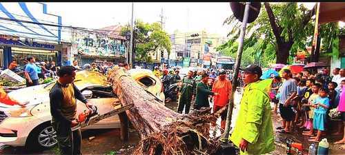 Pohon di Kota Sidoarjo Roboh dan Menimpa Mobil Berplat N