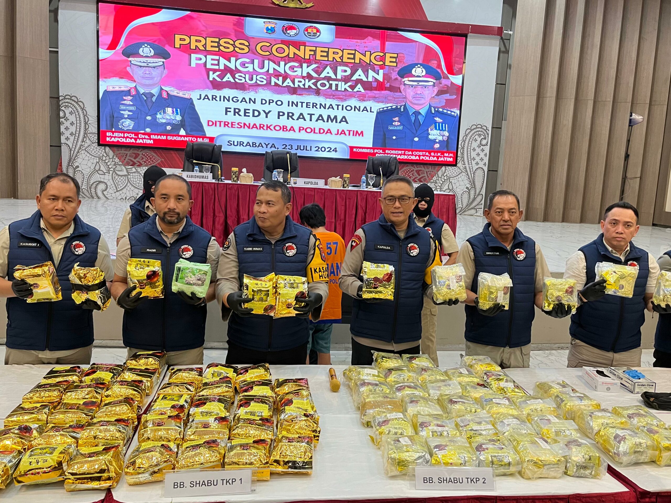 Ditresnarkoba Polda Jatim mengungkap kasus narkoba jaringan DPO internasional, Fredy Pratama (gembong narkoba di Indonesia). Barang bukti yang disita, diantaranya 88.869 gram (88,8 kilogram) sabu dan 2.100 butir pil ekstasi, dengan estimasi menyelamatkan 820.000 nyawa manusia.