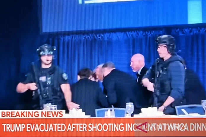 Pada Sabtu (25/4) malam waktu setempat, Trump harus dievakuasi dari Hotel Washington Hilton saat acara gala White House Correspondents’ Association setelah tembakan terjadi di dalam lokasi acara.