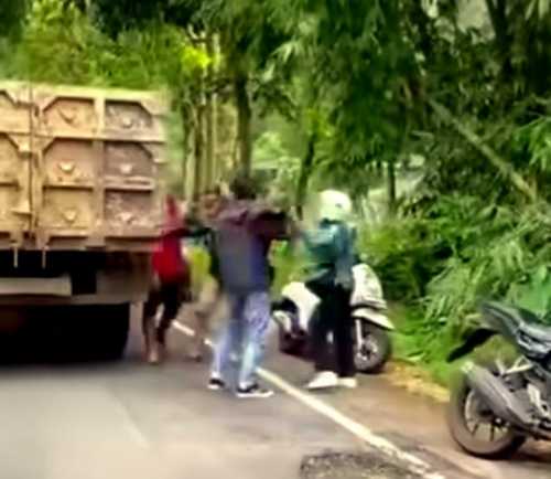 Di tengah perjalanan, korban mendapati satu unit dump truck melakukan manuver melewati marka jalan dari arah berlawanan. Korban kemudian menghentikan sepeda motornya di depan kendaraan itu. Kemudian terjadi cekcok mulut setelah korban mendengar kata-kata yang dilontarkan pengemudi truk.