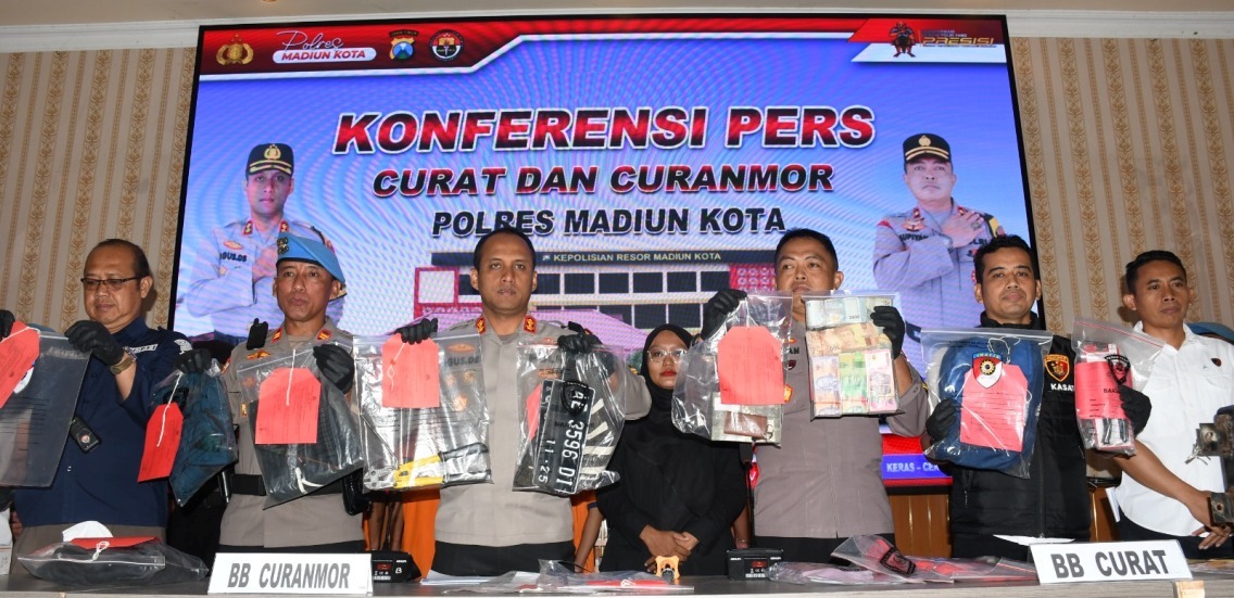 Polres Madiun Kota merilis hasil ungkap kasus curanmor dan curat brankas yang terjadi di wilayah hukum Polres Madiun Kota. Dalam konferensi pers, Kamis (30/1/2025) yang dipimpin Kapolres Madiun Kota, AKBP Agus Dwi Suryanto, mengungkapkan, Polres Madiun Kota telah berhasil mengungkap 19 TKP curanmor serta 1 TKP curat brankas dengan tersangka berjumlah 7 orang.