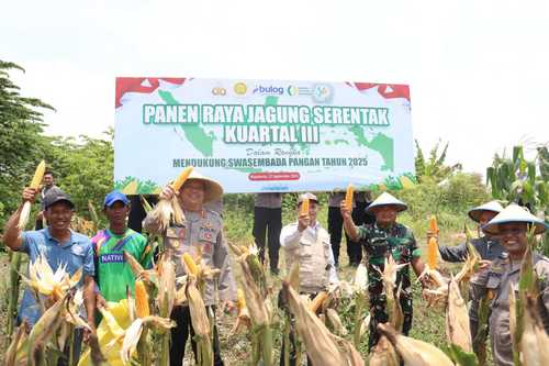 Kapolres Mojokerto Kota AKBP Herdiawan Arifianto memimpin Panen Raya Jagung Kuartal III bersama dinas terkait dan kelompok tani. Panen yang menghasilkan sekitar 2 ton jagung ini diharapkan memperkuat ketahanan pangan masyarakat.