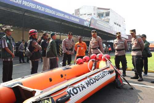 Usai apel, AKBP Herdiawan meninjau langsung kesiapan perlengkapan dan kendaraan taktis yang akan digunakan dalam penanganan bencana, seperti perahu karet, alat evakuasi, dan perlengkapan medis.