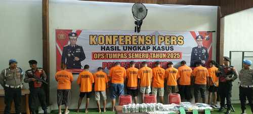 Polres Situbondo menggelar konferensi pers di lapangan tembak, Jumat (19/9) dipimpin Wakapolres, Kompol Indah Citra Fitriani dan Kasat Narkoba, AKP Lutfi. Kompol Indah menjelaskan keberhasilan mengungkapkan kasus Tumpas Semeru 2025.
