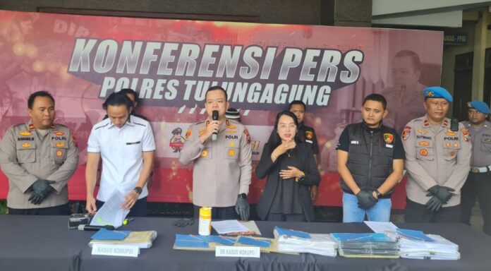 Kapolres Taat Resdi merilis tersangka dan barang-bukti, setelah itu kemudian melimpahkan kasus tipikor tersebut ke Kejari Tulungagung, Kamis (24/4).