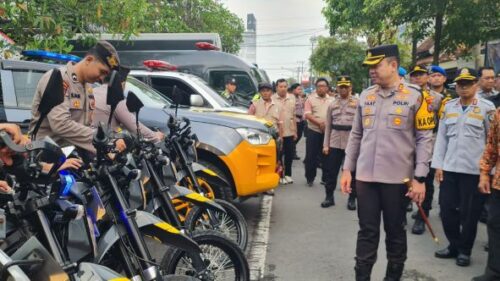 Kapolres Taat memeriksa kendaraan bermotor yang dilibatkan dalam Operasi Lilin Semeru 2025 usai apel gelar pasukan.