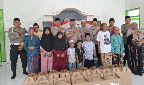 Kapolsek Besuki AKP Febry Hermawan bersama anggota polisi mendatangi musholla yang berada di Dusun Kojuk untuk menyapa warga dan menyerahkan bantuan secara langsung. Puluhan warga membutuhkan dan anak yatim menerima paket sembako dalam kegiatan bertema “Bersama Kita Ringankan Beban Sesama.”