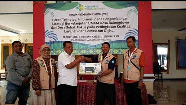 Politeknik Kesehatan (Poltekkes) Kemenkes Surabaya melaksanakan Pengabdian kepada Masyarakat (Pengabmas) dengan menggelar mini workshop, bertema ‘Peran Teknologi Informasi pada Pengembangan Strategi Berkelanjutan UMKM Desa Balongdowo dan Desa Sehat’ di Pendopo Balai Desa Balongdowo, Kabupaten Sidoarjo, baru-baru ini, dalam rangka Program Pengembangan Desa Mitra (PPDM).