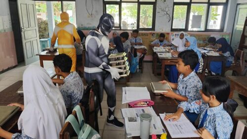 “Awalnya ada ide dari tim kami yang kebetulan punya beberapa kostum. Lalu kami realisasikan untuk menambah semangat belajar siswa,” tutur Irvan usai mengantarkan MBG di SDN Ngletih 1, Kelurahan Tempurejo, Kecamatan Pesantren, Jumat (28/11).