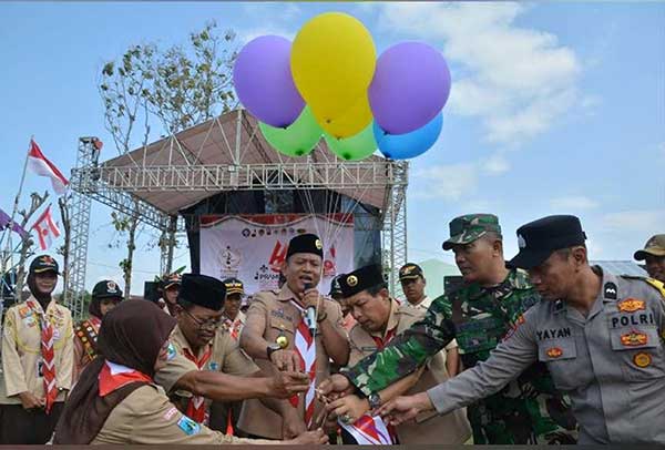 Ketua Kwartir Cabang Gerakan Pramuka Kabupaten Madiun dr.Purnomo Hadi membuka Jambore Kwartir Ranting Kebonsari. Selasa (12/8/2025). Jambore yang akan berlangsung selama tiga Hari mulai Selasa sampai Kamis ini di pusatkan di Lapangan Dusun Ngepeh Desa Sukorejo Kecamatan Kebonsari.