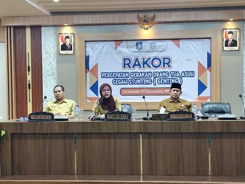 Jajaran Dinas Pemberdayaan Perempuan, Perlindungan Anak, Pengendalian Penduduk, dan Keluarga Berencana (DP3AP2KB) Kabupaten Situbondo menyelenggarakan Rapat Koordinasi (Rakor) Percepatan Gerakan Orang Tua Asuh Cegah Stunting (Genting), Selasa (9/9).