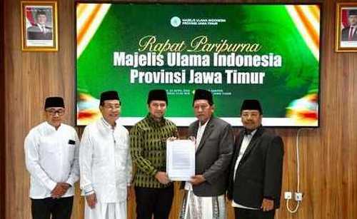 Majelis Ulama Indonesia (MUI) Provinsi Jawa Timur menggelar Rapat Paripurna di kantornya pada Senin (20/4). Acara ini menindaklanjuti pengunduran diri Ketua Umum MUI Jatim masa khidmat 2025-2030, KH Moh Hasan Mutawakkil Alallah, sekaligus menetapkan Prof Dr KH Abd Halim Soebahar sebagai penggantinya.