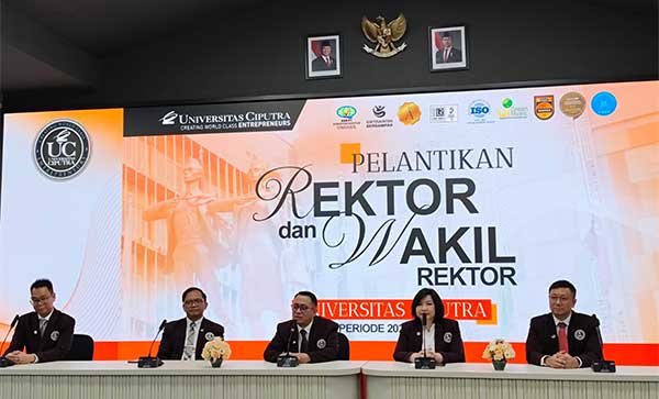 Universitas Ciputra (UC) Surabaya resmi melantik Prof. Dr. Wirawan Endro Dwi Radianto, M.ScA, CA., Ak. sebagai Rektor baru untuk masa jabatan 2025-2029. Bersamaan dengan pelantikan ini, turut dilantik jajaran Wakil Rektor yakni Warek bidang Entrepreneurship, Academic, dan Research, Dr. Astrid, S.T., M.M, Warek bidang Operations, Technology, and Resources, Michael Hery Tera, S.Kom., M.Kom. serta Warek bidang Student Affairs, Employability, and Industry Collaboration, Dr. Trianggoro Wiradinata.