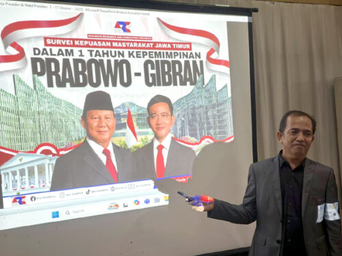 Lembaga survei Accurate Research and Consulting Indonesia (ARCI) merilis kepuasan warga Jawa Timur terhadap kinerja 1 tahun pemerintahan Prabowo Subianto-Gibran Rakabuming Raka. Hasilnya, mayoritas warga Jatim puas kinerja Prabowo-Gibran.
