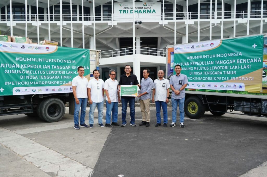PT Petrokimia Gresik selaku koordinator satgas bencana Nasional BUMN Wilayah Jawa Timur, menyalurkan bantuan untuk korban erupsi Gunung Lewotobi Laki-laki di Kabupaten Flores Timur, Nusa Tenggara Timur (NTT). Bantuan Petrokimia Gresik Group bersama anggota Satgas BUMN, diberangkatkan menuju NTT.