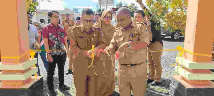 Kepala UPT BLK Situbondo, Bahtiar Santoso, didampingi Sekretaris Disnaker Kabupaten Situbondo, Agung Wintoro, saat meresmikan mini Job Fair, Selasa (28/4). sawawi/bhirawa