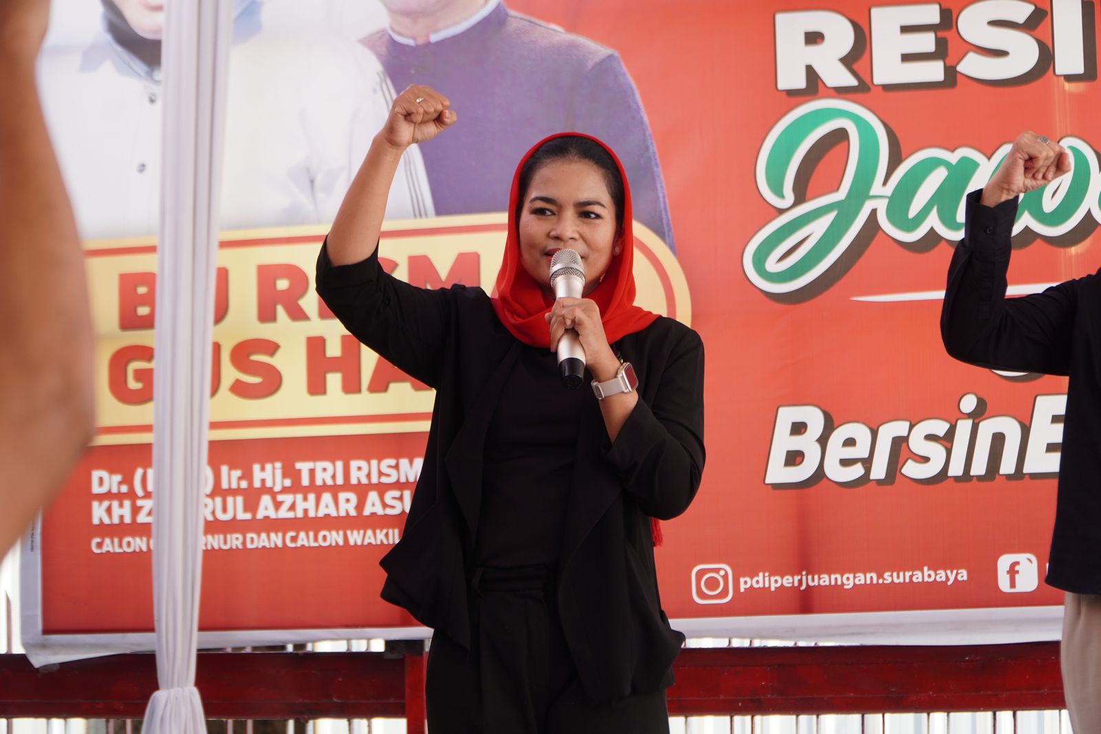 Selain itu, Puti juga menyerukan para kader partai untuk memenangkan Tri Rismaharini (Risma) dan Zahrul Azhar Asumta (Gus Hans) dalam Pemilihan Gubernur (Pilgub) Jawa Timur.