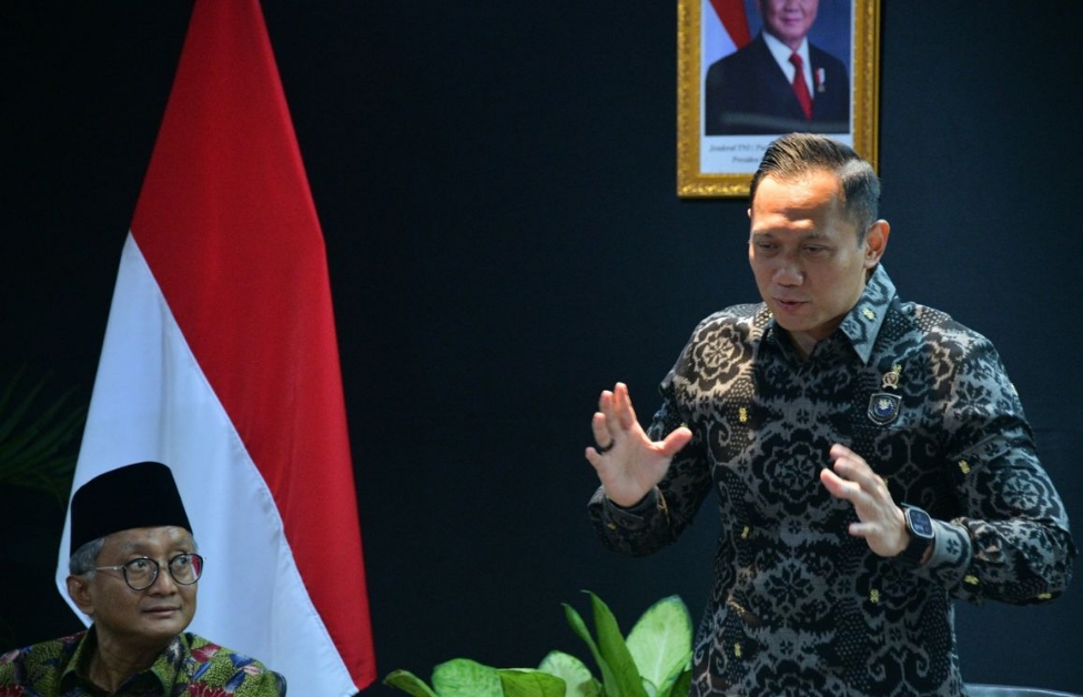 Menteri Koordinator Bidang Infrastruktur dan Pembangunan Kewilayahan Agus Harimurti Yudhoyono memimpin rapat Koordinasi Pembahasan Progress Pembangunan IKN di Kementerian Koordinator Bidang Infrastruktur dan Pembangunan Kewilayahan, Jumat (21/02/2025).
