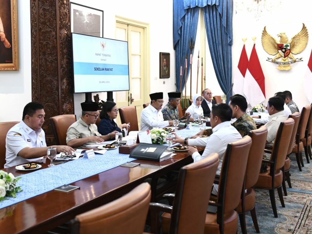 Rapat terbatas membahas persiapan pelaksanaan program Sekolah Rakyat di Istana Merdeka, Jakarta, Rabu (30/4/2025).
