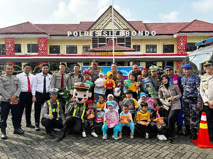 Suasana di Mapolres Situbondo mendadak riuh dengan suara tawa ratusan siswa Taman Kanak-kanak (TK), kemarin. Kehadiran para siswa dari TK Adzakiya, TK Nurul Anshor, dan TK Al-Amin ini bertujuan untuk mengenal lebih dekat tugas kepolisian melalui program Polisi Sahabat Anak (Polsanak).