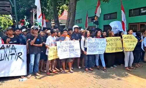 Warga menuntut agar kepala desa mereka mundur dari jabatannya. Pantauan di lokasi, ratusan warga berkumpul di halaman kantor Kecamatan Pasrepan. Mereka membawa berbagai spanduk yang bertuliskan tuntutan mundur kepada kepala desa.
