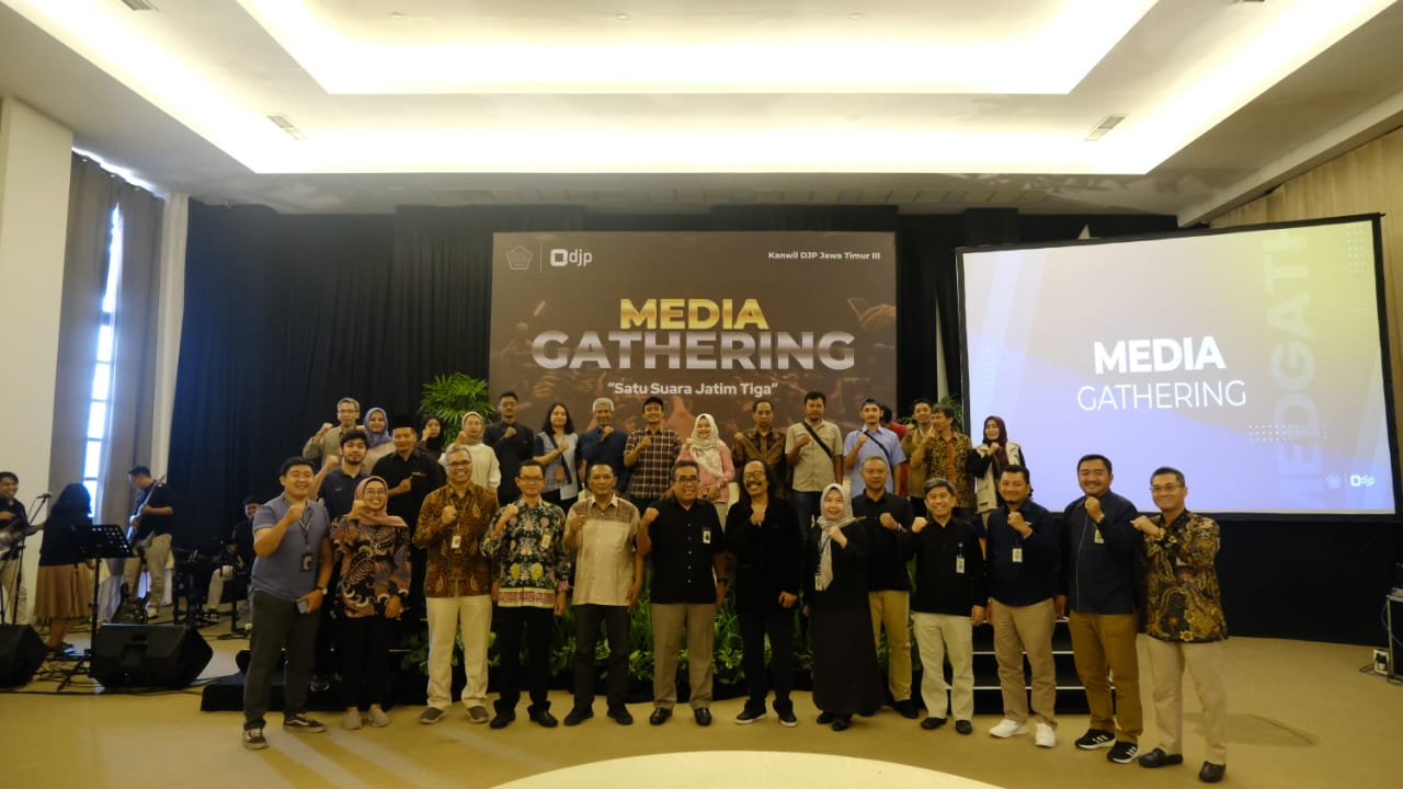Foto bersama para wartawan dan Pejabat DJP Kanwil Jatim III Usai media gathering Kamis (21/11).