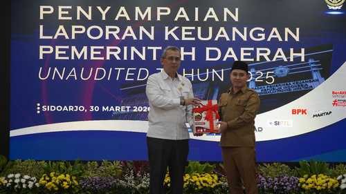 Wujudkan transparansi laporan keuangan Pemerintah Kabupaten Mojokerto, Bupati Mojokerto Muhammad Albarraa, menyerahkan LKPD (Laporan Keuangan Pemerintah Daerah) Unaudited tahun anggaran 2025. Senin (30/3) lalu.