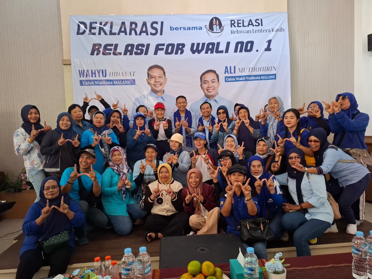 Kekuatan Wahyu Hidayat-Ali Muthohirin (WALI) bertambah setelah Relawan Lentera Kasih (Relasi) resmi mendukung di Pilkada 2024. Deklarasi dukungan ini berlangsung Sabtu siang (12/10) di rumah makan Baksos Damas, Kelurahan Mojolangu, Kecamatan Lowokwaru.