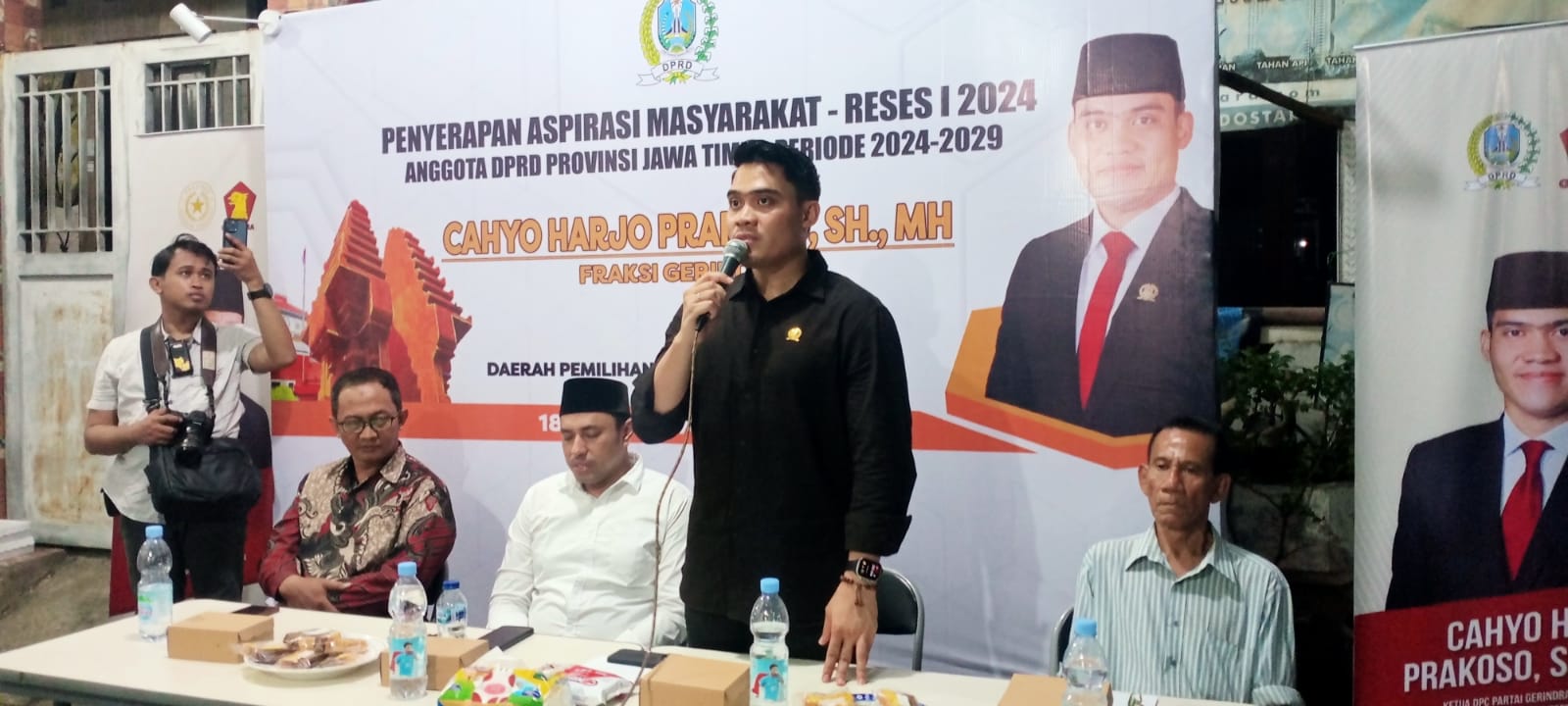 Anggota DPRD Jawa Timur, Cahyo Harjo Prakoso menggelar reses I 2024 di Jalan Kutai, Kelurahan Darmo, Kecamatan Wonokromo, Surabaya, Senin (25/11/2024) malam.