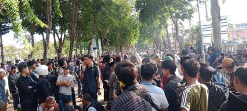 ??Aksi saling lempar botol plastik dengan aparat mewarnai aksi unjuk rasa. Kericuhan tersebut membuat situasi semakin memanas. Dalam kekacauan itu, massa sempat merusak salah satu pagar gedung DPRD Sampang sebelum akhirnya kembali berkumpul di tengah jalan depan gedung dewan. Hingga berita ini diturunkan, aksi unjuk rasa masih terus berlangsung dengan penjagaan ketat aparat keamanan.