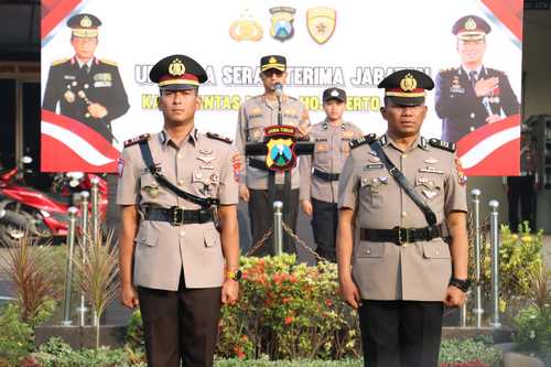 Kapolres Mojokerto Kota, AKBP Daniel S Marunduri, memimpin langsung upacara serah terima jabatan (Sertijab) Kasatlantas Polres Mojokerto Kota di Lapangan Patih Gajah Mada, Selasa (10/6) kemarin.