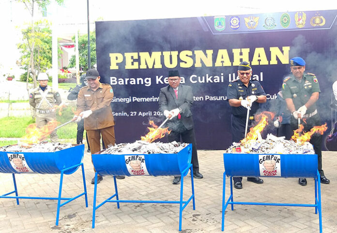 Pemkab Pasuruan bersama Kantor Bea Cukai setempat melakukan tindakan tegas terhadap peredaran barang kena cukai yang melanggar hukum.