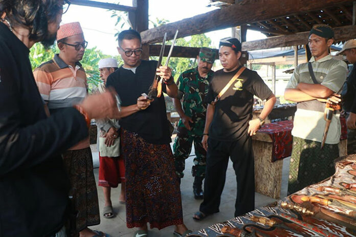 Kegiatan ini juga menghadirkan praktisi budaya serta empu pembuat keris, termasuk Mpu Ikka Arista dari Sumenep yang dikenal sebagai empu perempuan.