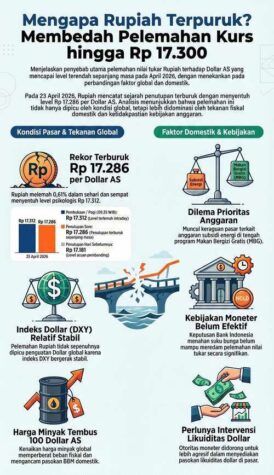 Nilai mata uang Indonesia, Rupiah, merosot paling buruk sepanjangan sejarah Keuangan. Dalam sepekan ke-empat April, rupiah tidak mampu bangkit ke level Rp 17.200-an. Kondisinya lebih parah dibanding krisis ekonomi (berujung krisis politk) nasional tahun 1998. Segenap pejabat tidak bisa lagi menyatakan “ekonomi Indonesia baik-baik saja.” Realita harus diakui. Karena beban utang luar negeri pemerintah dan swasta meningkat drastis akibat depresiasi rupiah.
