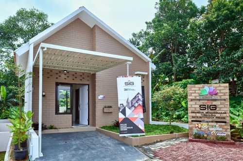 Rumah contoh yang dibangun di kawasan Perumahan Bumi Svarga Asri, Kabupaten Kendal, Jawa Tengah, menggunakan bata interlock presisi dari semen hijau SIG yang ramah lingkungan.
