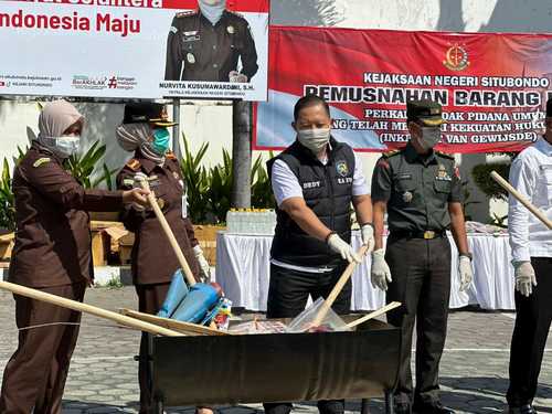 ”Kami melaksanakan eksekusi pemusnahan barang bukti yang telah berkekuatan hukum tetap atau inkracht, berdasarkan keputusan Pengadilan Negeri Situbondo. Kejaksaan dalam hal ini selain menjaga dan mengelola barang bukti, juga memiliki kewajiban untuk melakukan pemusnahan,” ujar Nurvita.