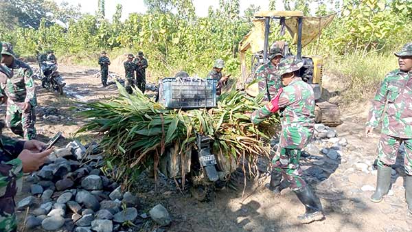 Salah satunya yang dilakukan oleh anggota TNI dari Kodim 0814 Jombang yang membantu warga pencari makanan ternak yang melintasi jalan rusak. Warga itu bernama Rosidi, yang tiap hari mencari rumput dan dedaunan untuk makanan ternaknya.