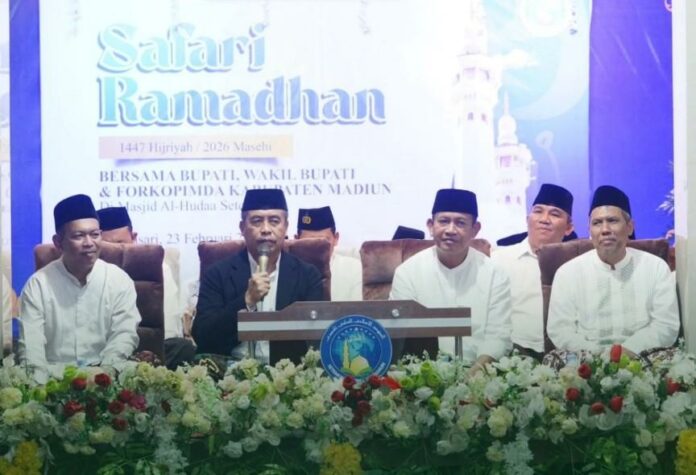 Pemerintah Kabupaten Madiun menggelar Safari Ramadhan di Masjid Al-Hudaa, Dusun Setemon, Desa Kebonsari, Senin (23/2) malam. Cara itu dihadiri Bupati Madiun H. Hari Wuryanto SH Mak, Wakil Bupati dr. Purnomo Hadi MH bersama Forkopimda, OPD terkait, ulama, tokoh masyarakat, dan warga setempat.